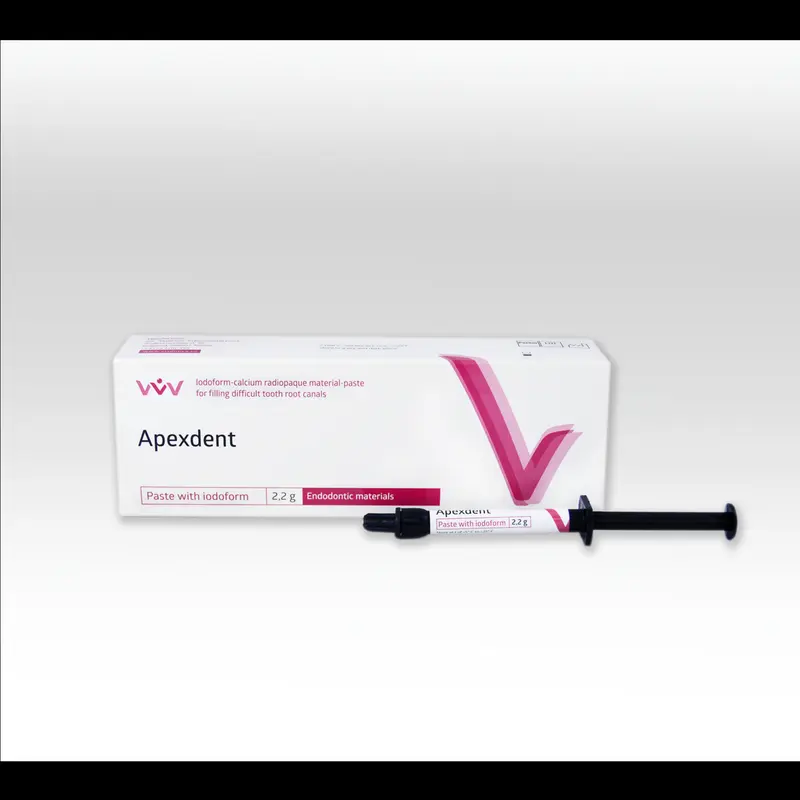 Apexdent (مع الأيودوفورم) لحشو القنوات الجذرية بعد المعالجة الميكانيكية. يوفّر المنتج تأثيرًا مطهِّرًا طويل الأمد، مما يعزّز الشفاء ويمنع حدوث المضاعفات.